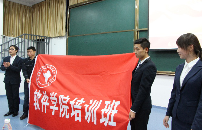 闫研在开班仪式上致辞,他从青马培训的意义出发,立足于大学生现状,提出“培养符合当前双创时代特色的、信仰坚定的IT精英”的观点。希望全体学员能够成为社会主义核心价值观的践行者、引领者、传播者,成为新时代的弄潮儿。最后,刘春风为本期青马工程学员代表授旗,宣告德赢官网Vwin第九期“青马工程”正式启动。