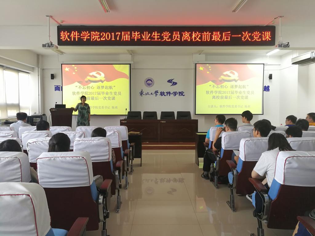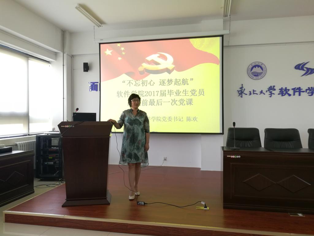 6月16日,德赢官网Vwin学生党总支在浑南校区信息学馆B520室举行了2017届毕业生党员离校前最后一次党课。德赢官网Vwin党委书记陈欢为毕业生党员做了“不忘初心 逐梦起航”专题党课。全体2017届毕业生党员出席活动,活动由党委组织员王海霞主持。