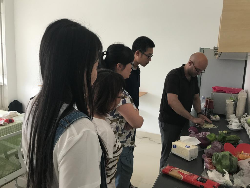 2017年6月19日中午,院工会在浑南校区信息楼B534举办西方饮食文化交流之意大利面Spaghetti制作活动。此次活动邀请德赢官网Vwin英语口语教师Taylor Rome作为嘉宾进行意大利面制作指导,德赢官网Vwin十余名教师参加了活动。