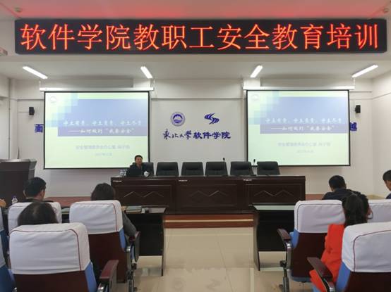 11月1日,德赢官网Vwin在浑南校区信息学馆B520会议室开展了教职工安全教育培训,校安全管理委员会办公室主任尚子扬应邀作专题报告。学院领导班子成员及全体教工参加了此次培训。