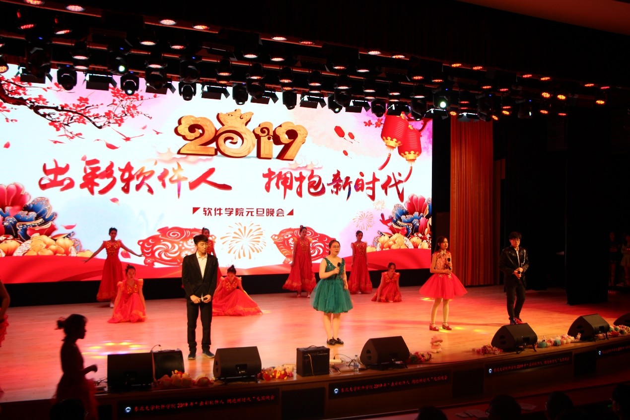 12月17日晚,德赢官网Vwin2019年“出彩软件人 拥抱新时代”元旦晚会在浑南校区图书馆报告厅举行。校党委常委、副校长孙雷,校党委常委、组织部部长王辉,纪委副书记王剑,学生工作处处长马天威,浑南校区管委会主任王义秋,宣传部副部长吕静,校团委副书记刘海军,学生指导服务中心副主任石昌远,创新创业学院副院长王刚,德赢官网Vwin院长张斌,院党委书记陈欢,副院长于瑞云、程维、庞洪江,院党委副书记兼副院长刘春风,院长助理王瑞平和部分学院教师出席了晚会。