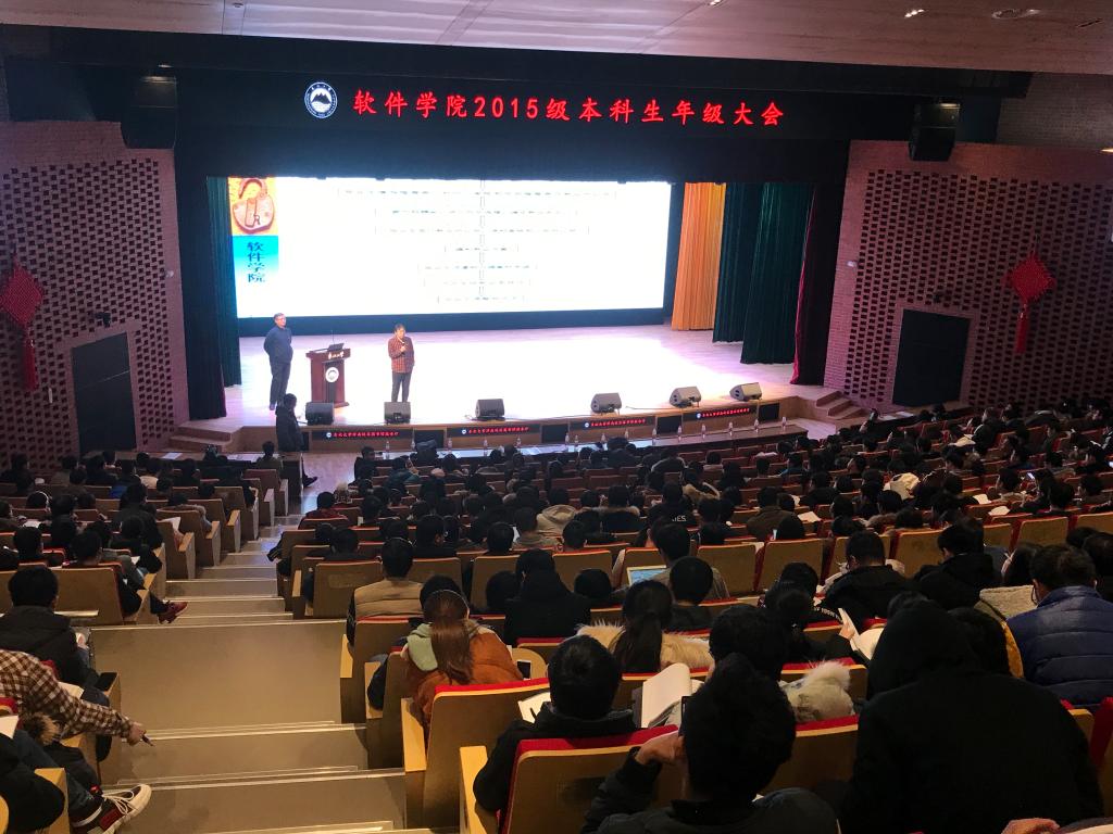 各年级大会涉及内容从教学管理到学生管理,针对不同年级侧重点不同。王瑞平解读了新出台的教学管理文件120号《本科生学籍管理规定》、105号《本科生课程考试补考规定》、106号《本科生学分绩点实施细则》、107号《本科生选课管理实施细则》。详细解读了各年级各专业(模式)培养计划、毕业资格审查至少学分要求及培养计划补充说明。详细解读了从17级开始实施的41号《推免工作办法》及《德赢官网Vwin推免工作细则》。介绍了大数据实验班和互联网金融实验班的办学情况。说明了2019年3月实施的补考工作的德赢官网Vwin实施方案。启动了2015级毕业设计工作,教学办张骁老师说明了毕设日程安排和各环节文档提交要求,强调了选题论证和论文查重等环节的重要性,系副主任刘洪娟老师讲解了毕业设计规范。各年级辅导员着重从学风建设、考风考纪要求、学生日常管理、安全注意事项等方面进行了讲解,并针对即将到来的元旦、寒假安全事宜进行了布置。