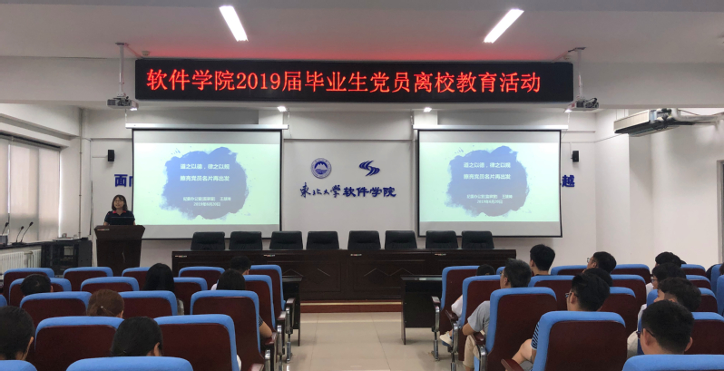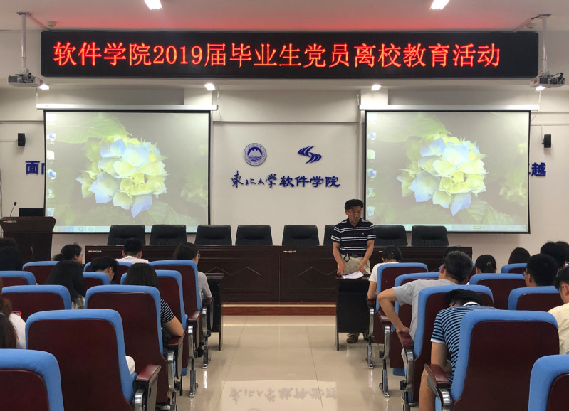 6月20日,德赢官网Vwin在浑南校区信息学管B520室举行毕业生党员离校教育活动。学院党委副书记兼副院长刘春风、纪委办公室正科级纪检员王慧琦、相关工作人员及2019届全体毕业生党员参加活动。
