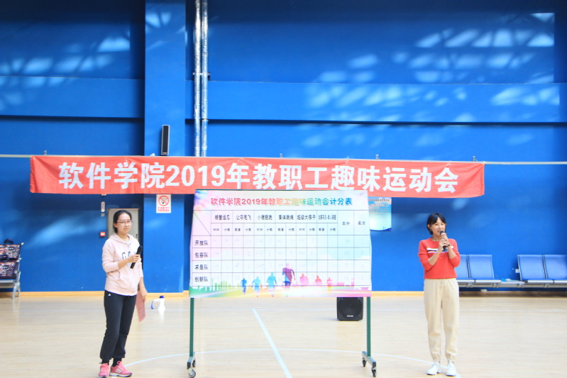 趣味运动会由学院党委书记滕超宣布开始,学院教职工以工会小组为单位分为四队,分别参与了螃蟹运瓜、让羽毛飞、小猪酷跑、集体跳绳、超级大筷子五个项目的角逐。最后根据积分排名,学院院长张斌宣布了比赛名次,由院办教学办工会小组、学办工会小组组成的“开放队”获得一等奖,由数字媒体技术系工会小组、外语工会小组组成的“创新队”获得二等奖,由软件工程系工会小组组成的“包容队”以及信息安全系工会小组、实验中心工会小组组成的“求是队”获得三等奖。