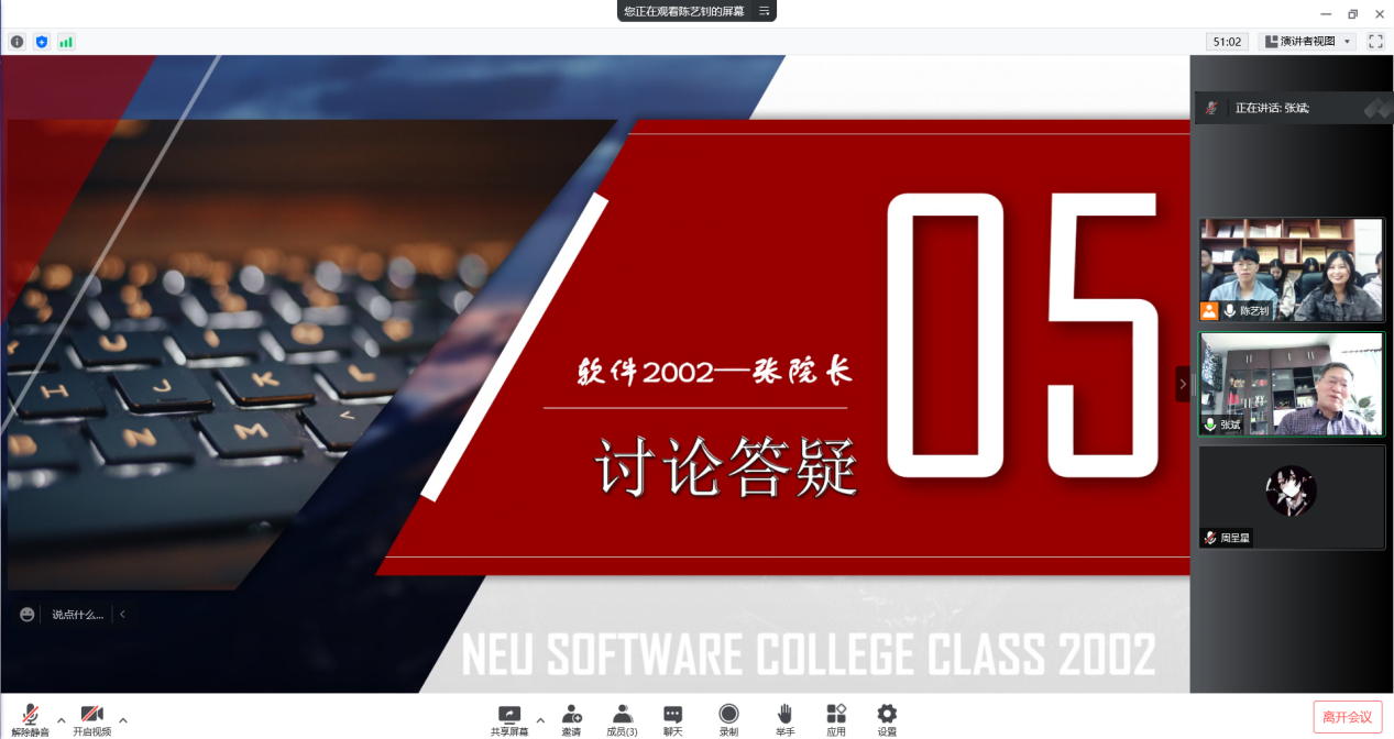 程维老师对接软信2002班,全程参与了班级的线上主题团日活动,就同学们关心的生涯规划问题作出解答,并激励同学们在未来的学业或职业生涯规划中能够脚踏实地,不忘初心,砥砺前行。