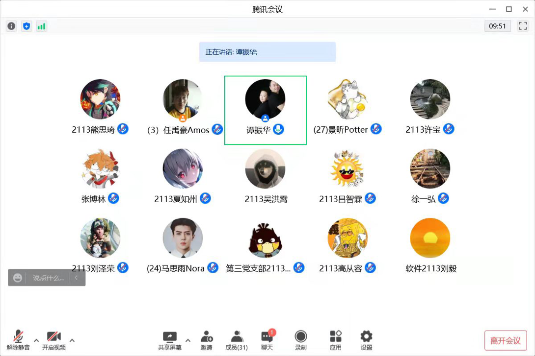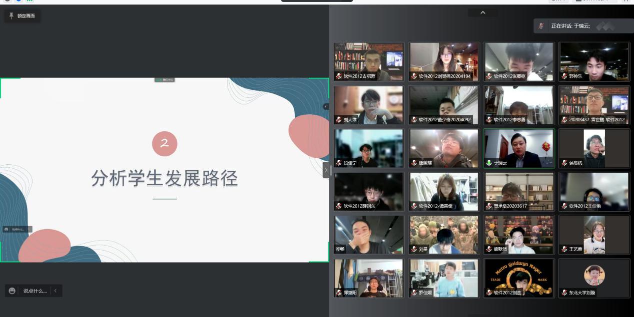 王裕民老师对接软件2001班,线上座谈中王老师聆听了班级发展情况和班集体建设“五育”工程进展,同学们聆听了王老师关于鼓励同学们投身科技报国的教诲。