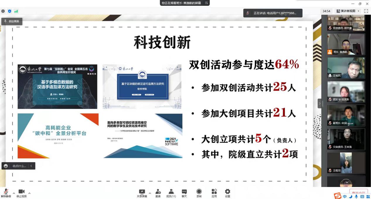高方武老师对接软件2011班,全程参与了班级的线上团日活动,并激励大家勇敢创新,争做情怀深、思维新、视野广的学习者和战斗者,坚持科技报国,担当新时代赋予的使命。