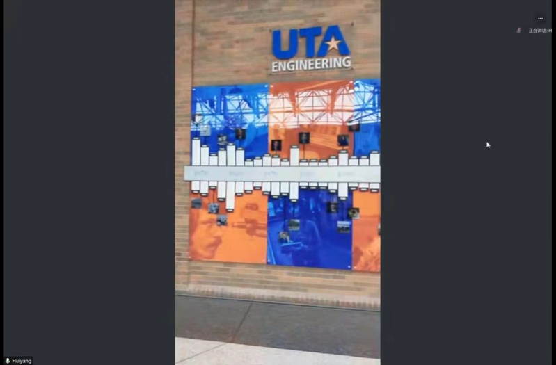 李慧旸通过直播的方式带领同学们身临其境、全方位地游览UTA校园。从合作学院——工学院的新址Science & Engineering · Innovation & Research Building(SEIR)出发,李慧旸带领同学们参观了学院的实验室、教室以及教工的办公室,随后游览了学校的图书馆、学生活动中心、体育馆、健身房、餐厅等区域,介绍了学生在美国的学习生活。游览最后,李慧旸建议,同学们应多关注行业前沿会议及相关文献,提升个人专业能力。