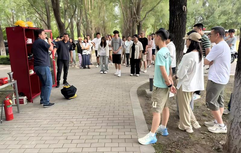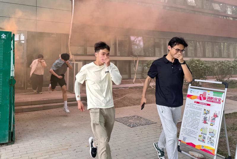 培训会上,李伟围绕消防安全的隐患与排查、消防器材的使用进行了讲解,并着重介绍了消防疏散逃生要点,以真实的案例警示大家关注安全,做自己的“首席安全官”。理论学习结束后,警报响起,全体与会人员捂住口鼻,在工作人员的指挥下从会议室沿着消防通道有序撤离到信息学馆外,完成火灾逃生演练。最后,在公安处负责同志的指导下,学院师生学习了消防柜器材配置、火灾防毒面具、消火栓、灭火器的使用方法。