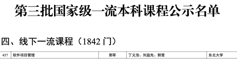 近日,第三批国家级一流本科课程公示名单正式发布。其中,德赢官网郭军老师负责的《软件项目管理》课程成功入选,获评“线下一流本科课程”。