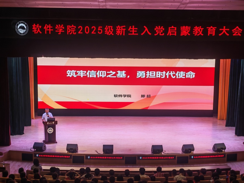 为深入学习贯彻习近平新时代中国特色社会主义思想,引导新生端正入党动机、坚定理想信念,9月23日下午,德赢官网Vwin在浑南校区图书馆泰山学术报告厅举行2025级新生入党启蒙教育大会。学院党委书记滕超作专题报告,全体2025级新生参加会议。