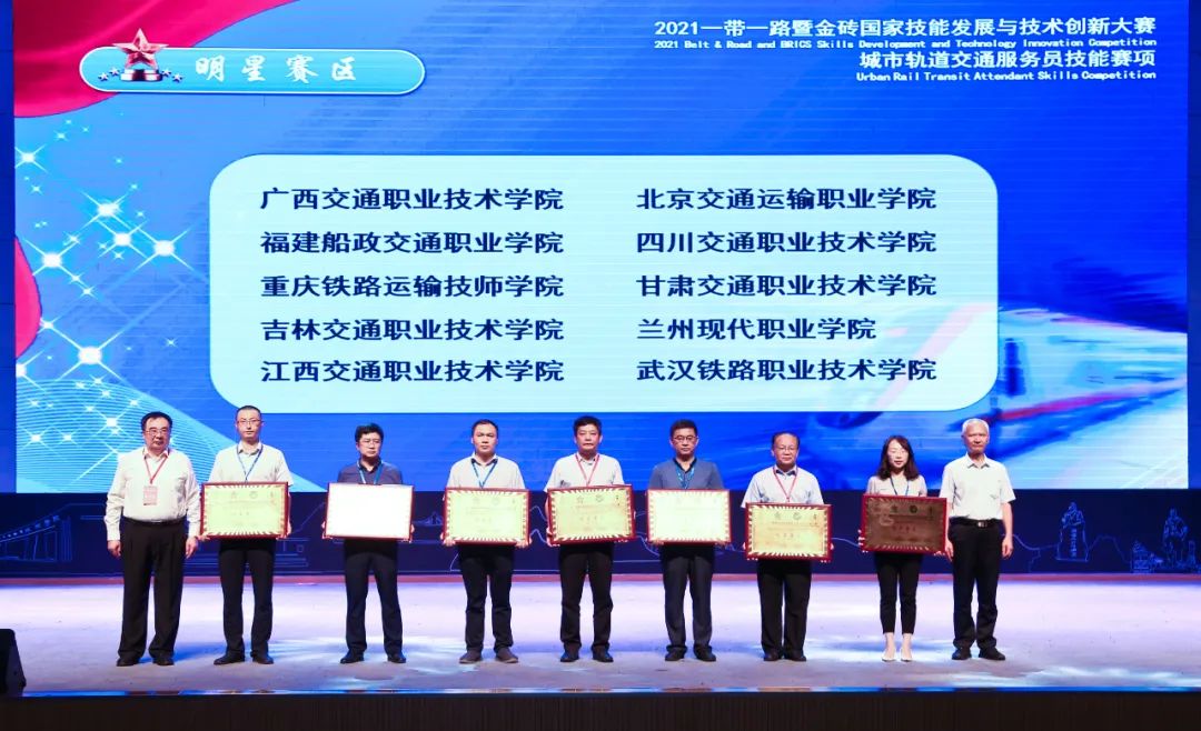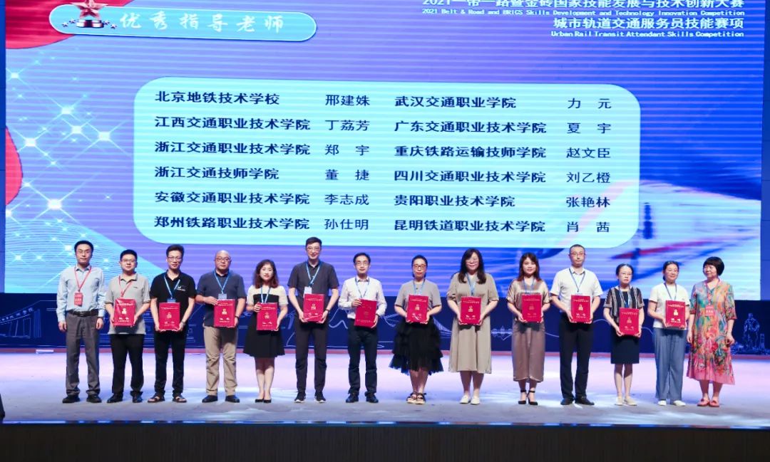 匠心铸就成才梦想,技能创造出彩人生。2022年7月16日,2021“一带一路”暨金砖国家技能发展与技术创新大赛城市轨道交通服务员技能赛项闭幕及表彰仪式在贵州交通职业技术学院举行。ac米兰党委书记王东平,副院长杨甲奇,轨道交通工程系和教务处主要负责人及获奖教师、学生代表参加了表彰仪式。