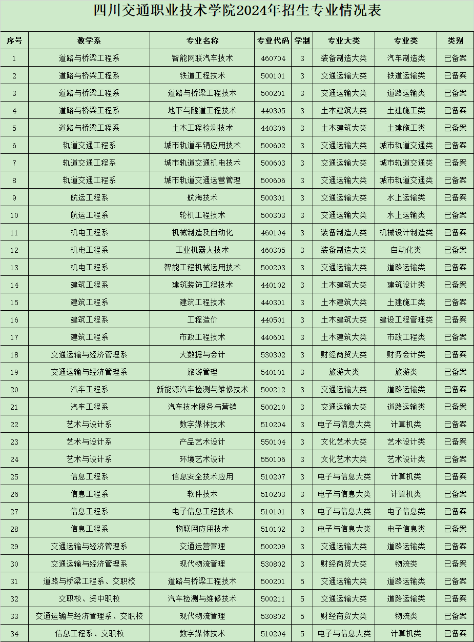 学院现有11个二级教学单位,由9个教学系和公共课教学部、马克思主义学院组成。2024年,开办招生专业36个,其中三年制高等职业教育专科专业30个,五年制一贯制联合办学专业4个,学院各系及专业分布情况如表1所示,当年新增招生专业1个,停招专业1个,如表2所示。