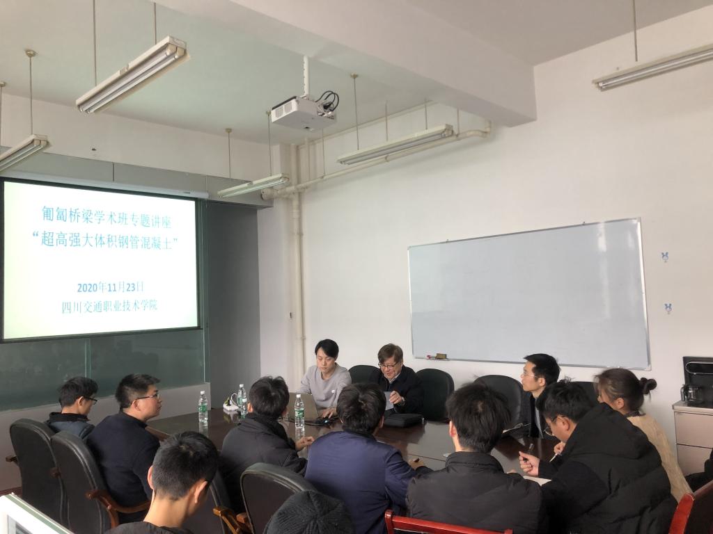 11月23日,四川交职院牟廷敏大师工作室邀请武汉理工大学产学研首席教授丁庆军到院,开展“超高性能混凝土的工程应用”专题讲座。