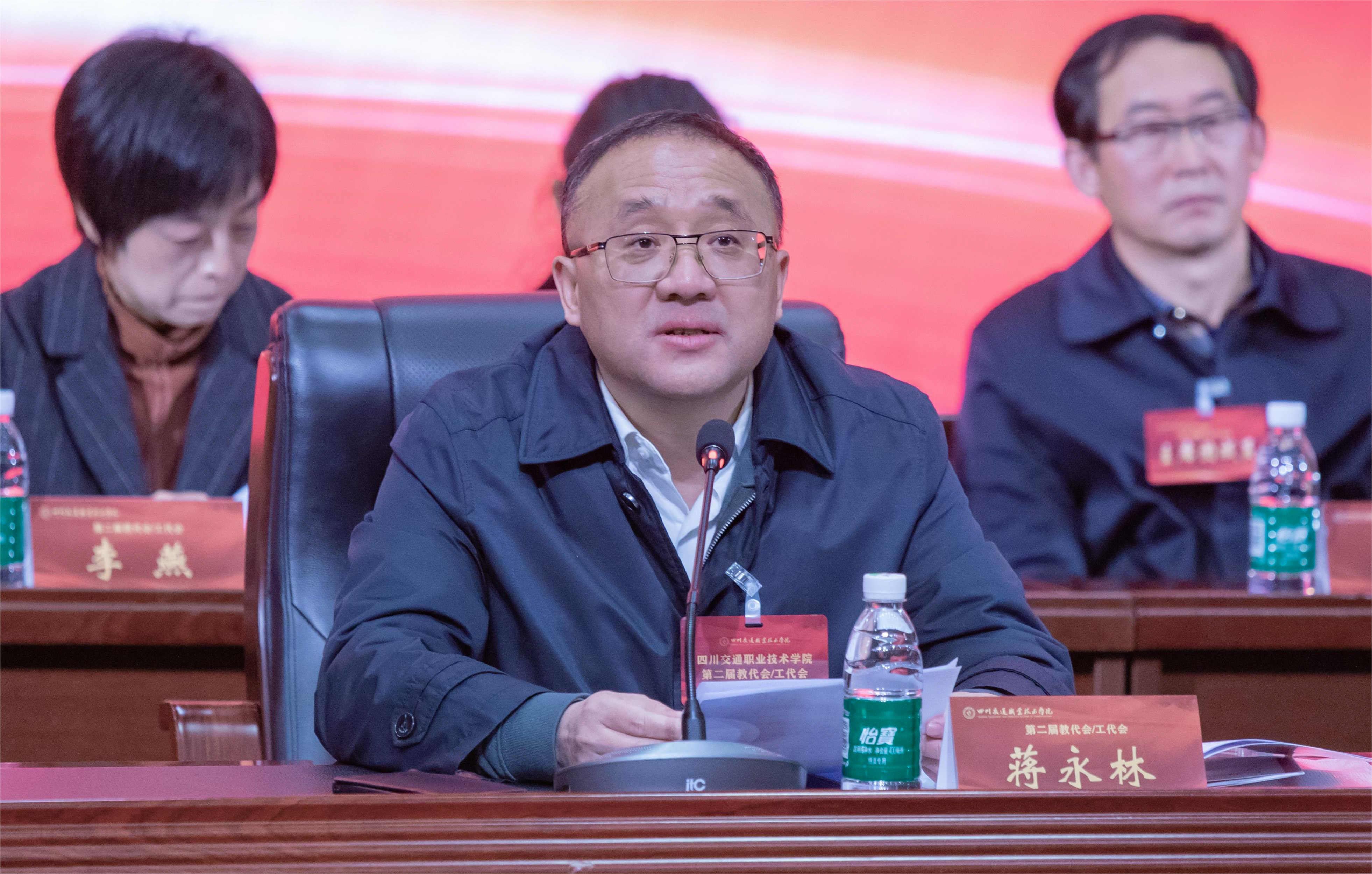 下一步,我们要以本次教代会暨工代会召开为契机,一是要在厅党组、省教育厅的坚强领导下,坚持以习近平新时代中国特色社会主义思想指导,坚定不移强化党的全面领导,持续加强党的建设,把牢正确办学方向,为学院高质量发展提供坚强政治保证和组织保证。二是要在职业教育主阵地上,牢牢抓住国家深化职业教育改革和加快构建现代职业教育体系的重大机遇,落实立德树人根本任务,凝心聚力、脚踏实地、开拓创新,加快构建交通职业教育高质量发展体系。三是要持续深化机制体制改革,持续完善“两代会”制度,持续优化民主管理,团结和凝聚全院力量,携手共建民主文明和谐美丽校园,不断增强教职员工获得感幸福感安全感,为学院内涵式高质量发展营造良好的环境和氛围。
