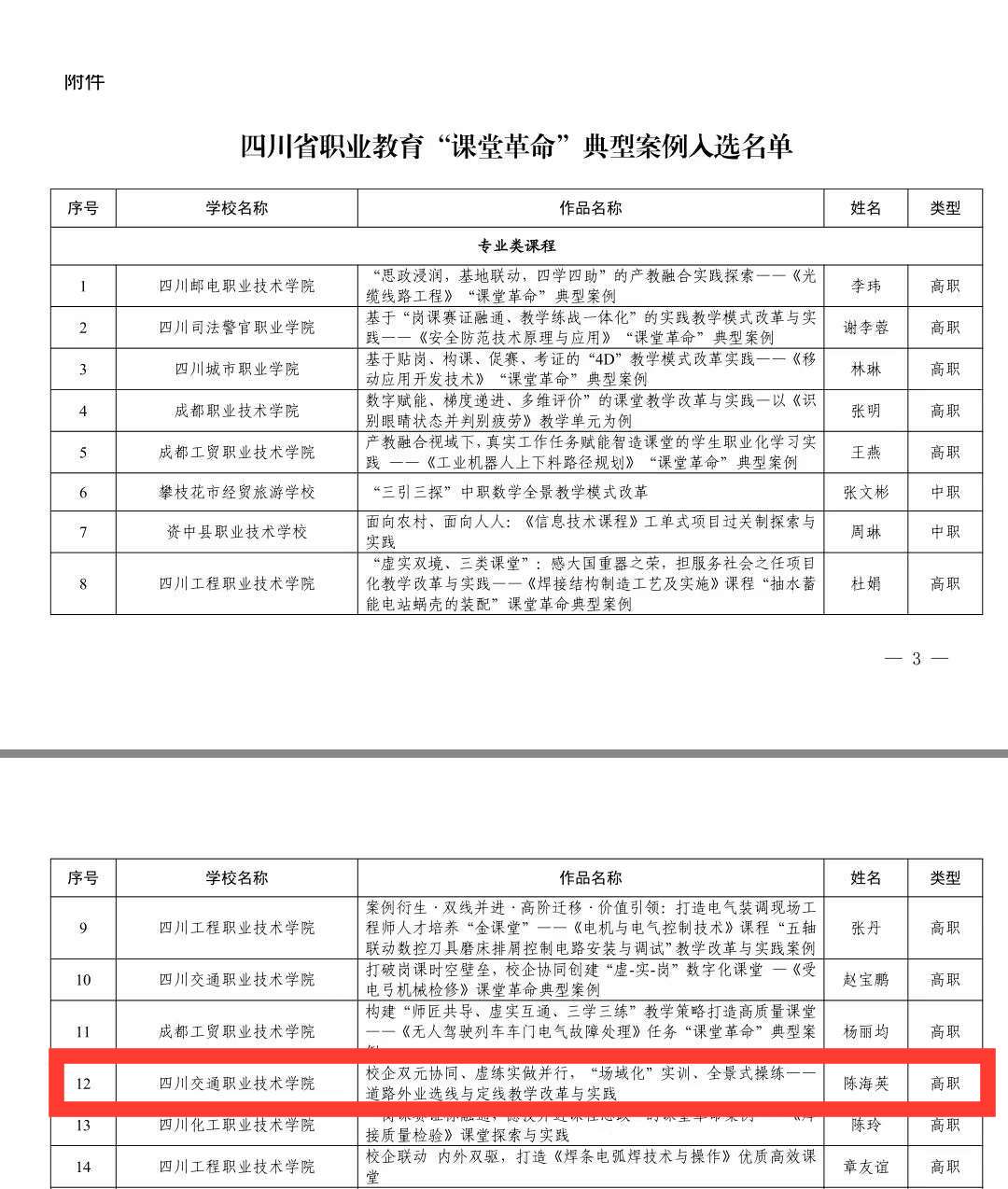学院道路与桥梁工程系陈海英老师团队入选四川省职业教育“课堂革命”典型案例