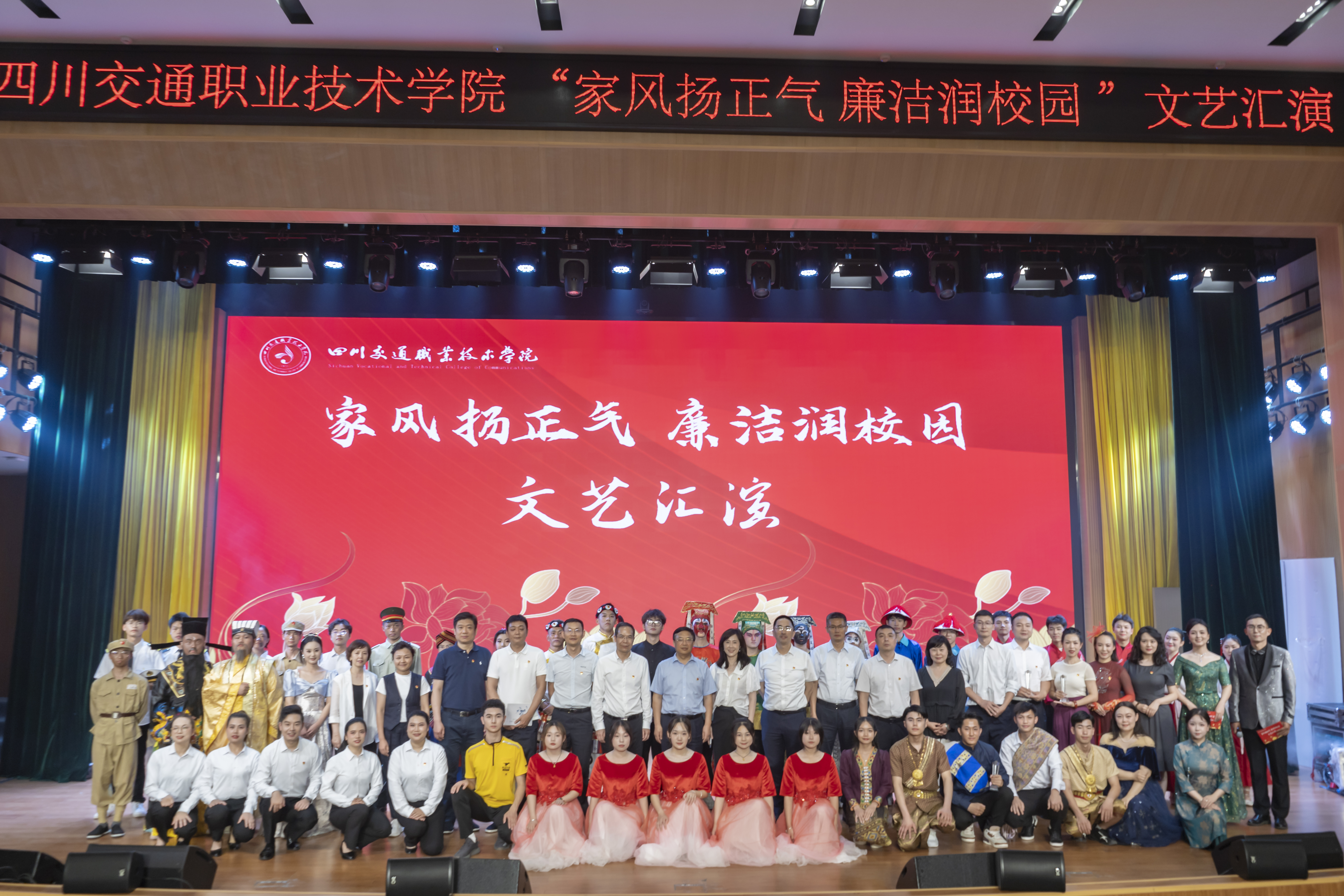 活动当天下午,“家风扬正气 廉洁润校园”文艺汇演在厚学楼报告厅拉开帷幕。本次文艺汇演是学院深入推进新时代廉洁文化建设重要举措,希望通过打造更多特色平台、品牌,让优良家教家风、廉洁文化更加贴近实际、贴近师生、贴近生活,让好的家庭家教家风深入人心、蔚然成风,引导广大师生共同做优良家教家风的坚定“传承者”、积极“传播者”、模范“践行者”,为深入推进“清廉交通”建设贡献学院力量。驻厅纪检监察组组长、厅党组成员、一级巡视员杨晖,厅机关处室、厅直单位领导及来宾,学院领导和师生共400余人观看演出。