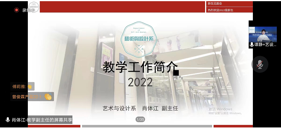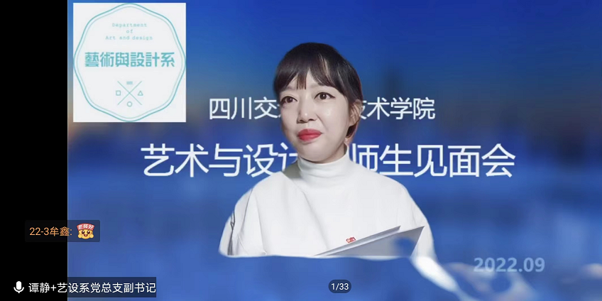 2022年9月15日9点,艺术与设计系2022级师生见面会在腾讯会议举行,系领导班子成员、系办公室主任、系团总支书记、各干事、新生班辅导员及2022级313名新生参加了本次线上见面会。活动由系党总支副书记谭静主持。